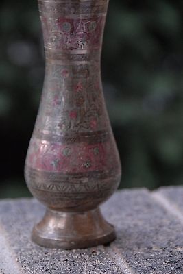 Title (ebay affiliate link): ANTIQUE BRASS 8" ENGRAVED VASE WITH RED ~GREEN MADE IN INDIA
