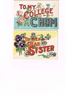 4 Card Lot, Greetings, "To My" Series, Teacher, College Chum, Pet, Sister! 1908