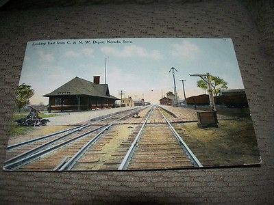 Title (ebay affiliate link): Nevada, Iowa Postcard-Looking EAst from C & N. W. Depot