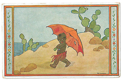 Title (ebay affiliate link): Rie Cramer, Old postcard with black kid - Art-deco - 1947