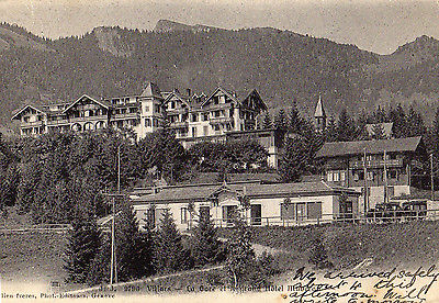 OLD POSTCARD-SWITZERLAND-J J 3796 -Villars-Le gare et le Grand Hotel Muveran