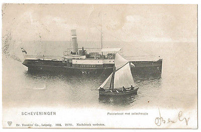 Title (ebay affiliate link): Steamship 'Chicago' with sailing boat Scheveningen / Holland. Old Postcard 1904