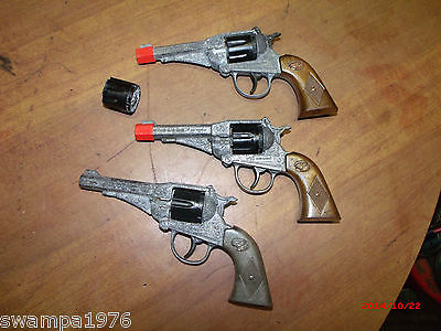 3 Vintage Edison Giocattoli die cast metal cap gun Italy OLD ANTIQUE MAT. 0022