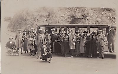Title (ebay affiliate link): ca. 1910s Cliff House San Francisco Sightseeing Tour Bus - Passengers - RPPC
