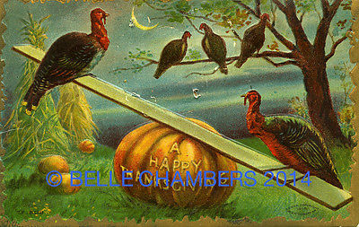 Title (ebay affiliate link): Authentic VINTAGE THANKSGIVING Embossed Seesaw for Turkeys Postcard