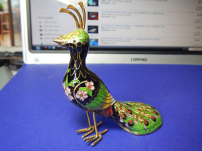 ANTIQUE INTRICATE BLACK & GREEN CLOISONNE PEACOCK ? ROOSTER ? PHEASANT ? BIRD