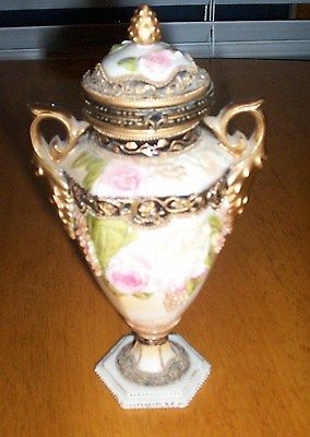 Title (ebay affiliate link): Nini Sahiba Rose And Bloom Flower Vase Hand Painted Urn Brass Ceramic