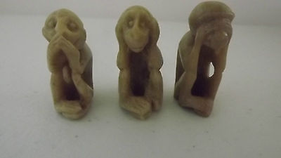 Soapstone See Speak Hear No Evil Monkey Carved Figurine Set