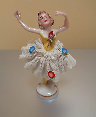 Antique Dresden Porcelain Lace Doll ~ Germany ~ 3 1/4" Tall ~ Figurine