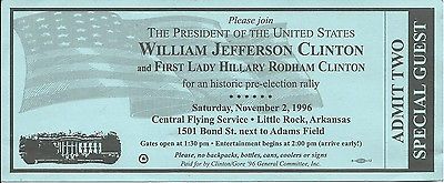 Title (ebay affiliate link): BILL CLINTON 1996 LITTLE ROCK ARKANSAS PRE ELECTION RALLY TICKET