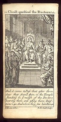 1725C MINIATURE COPPER PLATE BIBLE ENGRAVING/JESUS WITH THE DOCTORS!