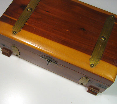 Title (ebay affiliate link): Vintage Footed Cedar Keepsake Box Treasure Chest Brass Trim 10.75" Wide