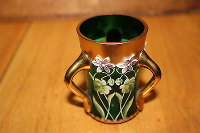 Title (ebay affiliate link): Victorian Green Art Glass with Gold Accents & Raised Flowers Toothpick Holder