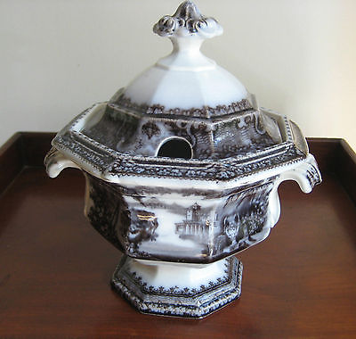 Title (ebay affiliate link): Victorian Staffordshire Mulberry Sauce Tureen Black and White c1860