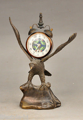 Collectible Decorated Old Brass Carved Eagle Mechanical Table Clock Watches