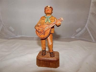 Antique Early ca. 1935 Unsigned ANRI Wood Carved Mandolin Player Figurine Italy