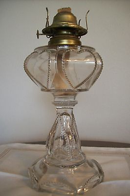 SCARCE EAPG PRESSED BEADED HEARTS patt. OIL LAMP -circa 1860'-1880's.