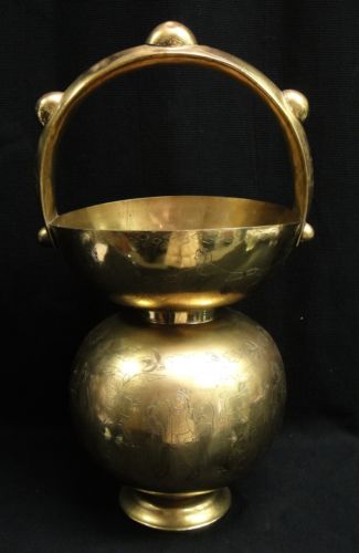 Title (ebay affiliate link): Antique 18th-C Carved Brass 2-Globe 21" Harvest Vase Pot Basket w/ Large Handle