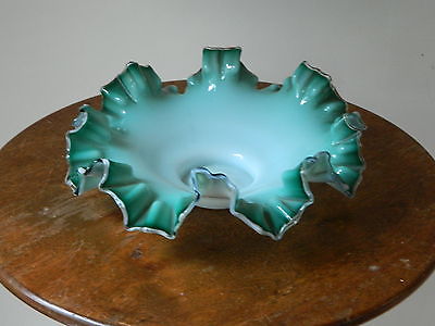 Antique Victorian Ruffled Edge Green And White Brides Basket Bowl