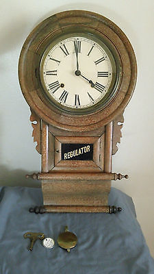 Antique Regulator Wall Clock w/ Pendulum & Winding Key