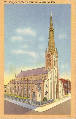 Title (ebay affiliate link): 1940's Unused Color Linen Postcard St. Mary's Catholic Church Norfolk Virginia