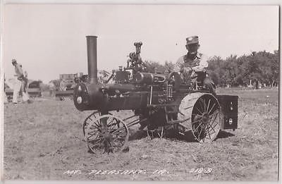 Mt. Pleasant, Iowa Postcard Photo RPPC Postcard Farmer on Steam Tractor c1950s