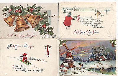 23 New Year greetings children windmills bells lighthouse ship antique pc Z5099