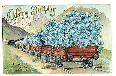Title (ebay affiliate link): Locomotive Train Full of Blue Forget Me Not Flowers 1909 Greeting Postcard 1900s