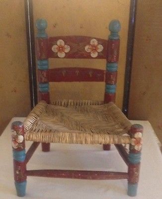 Title (ebay affiliate link): Vtg Child's Handmade Painted Wooden Rush bottom Chair Primitive Folk Art Antique