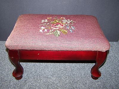 Vintage Floral Needlepoint Foot Stool 9 1/2 by 14 Inches