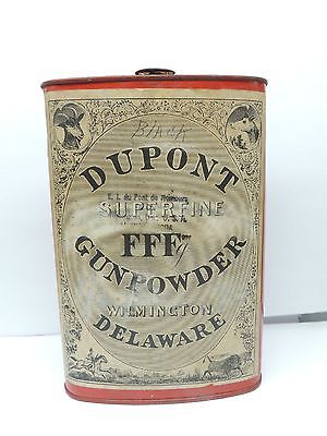 Title (ebay affiliate link): ANTIQUE DUPONT SUPERFINE FFF GUNPOWDER TIN PAPER LABEL WILMINGTON, DE