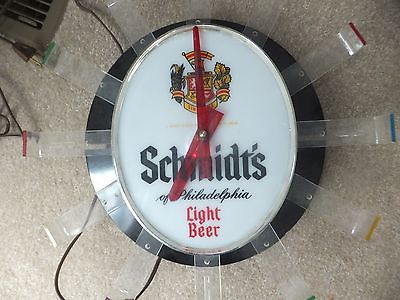 Vintage RARE SCHMIDT'S PHILADELPHIA LIGHT BEER ILLUMINATED Advertising Clock