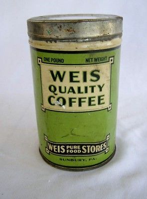WEIS BRAND COFFEE 1 POUND TIN LITHO CAN VINTAGE ADVERTISING SUNBURY PA