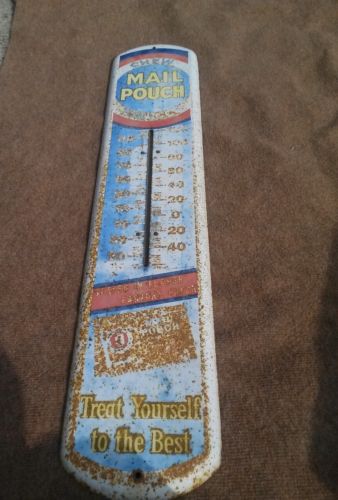 Title (ebay affiliate link): VTG 39" TIN MAIL POUCH THERMOMETER, BARN FRESH! The Thermometer Is Broke.
