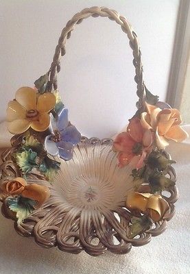 Title (ebay affiliate link): Large Rare Vintage Capo Di Monte Capodimonte Flower Basket Signed 15"L x 13"H