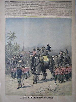 OLD PRINT ENGRAVING 1893 ARMY OF SIAM THAILAND ELEPHANT