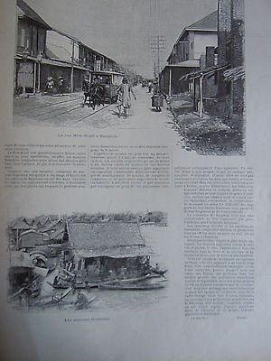 Old Print 1893 EngravingsThailand Siam View of Bangkok & New Road