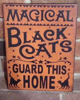 Title (ebay affiliate link): Primitive Naive Halloween "MAGICAL BLACK CATS GUARD THIS HOME"'Wood Sign Hp