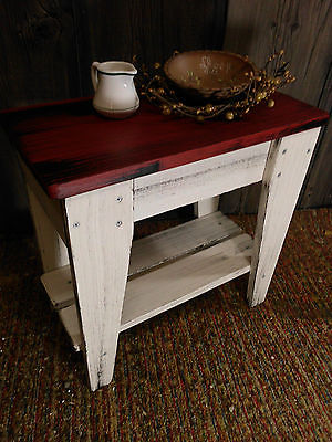 Title (ebay affiliate link): Weathered BARN Red Wooden Primitive Side Table with Lower Shelf-Ships Assembled