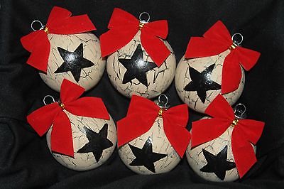 Set Of 6 Country Primitive Rustic Ornaments Bulbs Christmas Stars & Bows