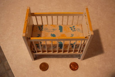 antique wood baby crib doll furniture W/mattress