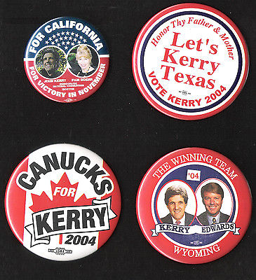 Title (ebay affiliate link): 4 unusual JOHN KERRY 2004 campaign buttons including California jugate