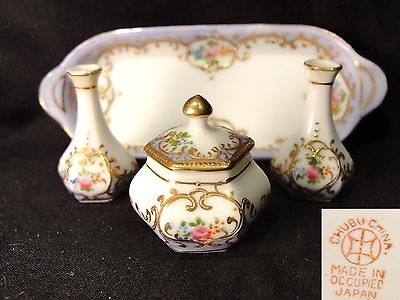 Miniature Occupied Japan 1" Dresser Jar w/ Lid Vases Tray Chubu +Free Bonus