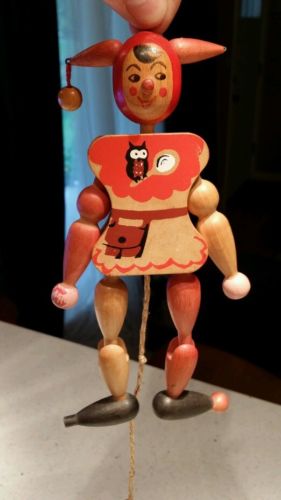 Title (ebay affiliate link): Vintage Wooden Pull String Toy Made in Austria Joker Jester Ornament