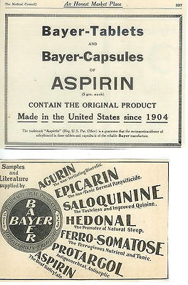 BAYER ASPIRIN MEDICINE AD 2 HALF PAGE ADS FROM MED JOURNAL RARE1918