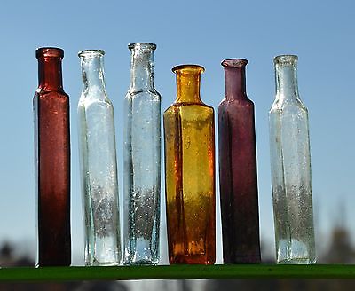 Antique 6x Vials glass color * medicine - Drops * bottles c. 1880-1900