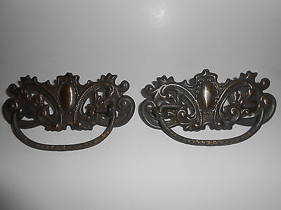 set of 2 vintage Brass backplates furniture Hardware antique oak victorian bail