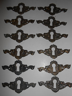 Set of 12 keyhole covers Escutcheon set vintage furniture Hardware antique brass