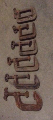 6 Industrial C Clamp Coat Hooks Table Craft Shelf Vintage Cast Iron Steel Tools