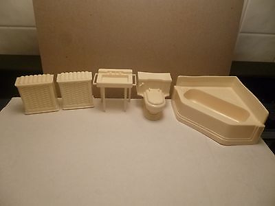 Title (ebay affiliate link): Lot of Antique Marx Dollhouse Furniture Bathroom Set Corner Bathtub Sink Hamper!